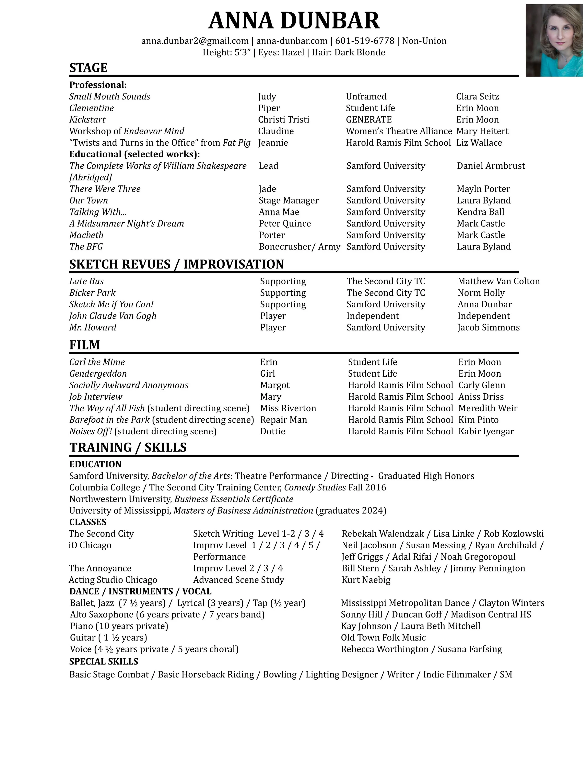 Theatrical Resume